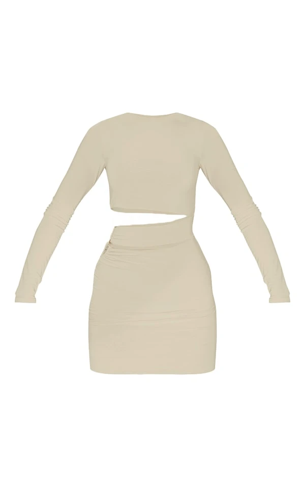 Crush infini sur la robe gris pierre ! Avec sa matière slinky, ses découpes sur la taille et le détail des anneaux très funky, c’est impossible de résister. Il suffit d’ajouter des talons et une paire de créoles pour finaliser le tout !