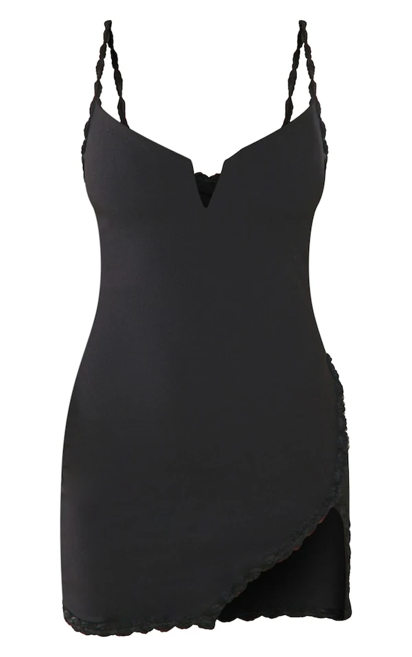 Tellement belle dans cette robe à la coupe moulante. On aime sa couleur noire qui se porte avec tout, son design à barre en V hot et la touche poétique des roses sur la bordure. Portée avec une paire de mules et quelques accessoires colorés, on valide à 100% !