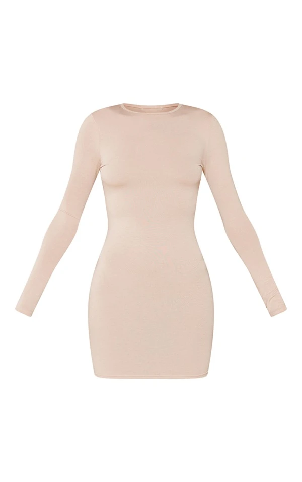 Robe moulante sable en jersey à manches longues avec dos nu et liens à nouer