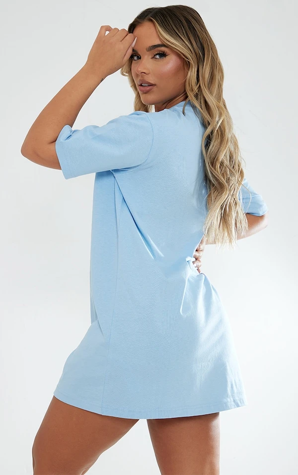 Robe t-shirt oversize bleue en coton