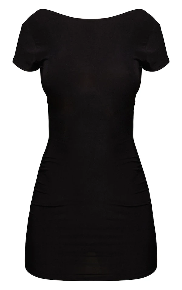 Robe très moulante noire à manches courtes et dos échancré