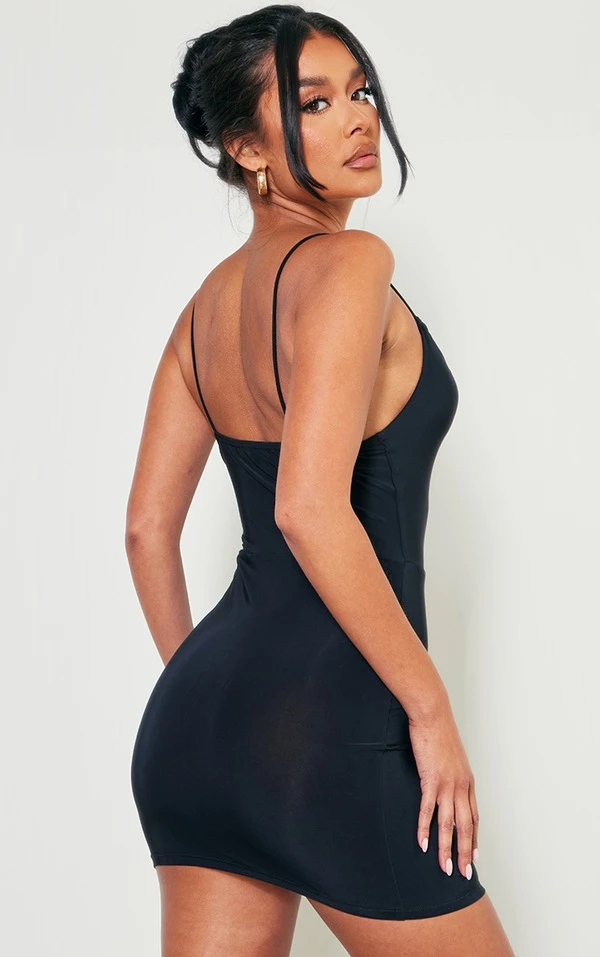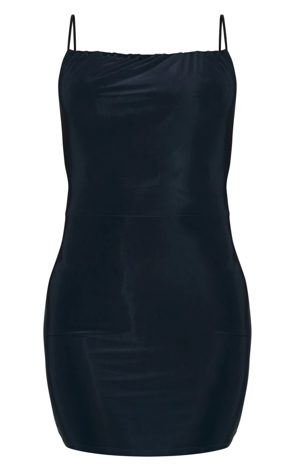 Robe très moulante noire froncée à bretelles