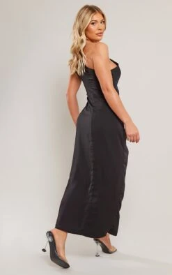 Robe Droite Bustier Satinée Kaki à Ourlet Asymétrique Et Fronces