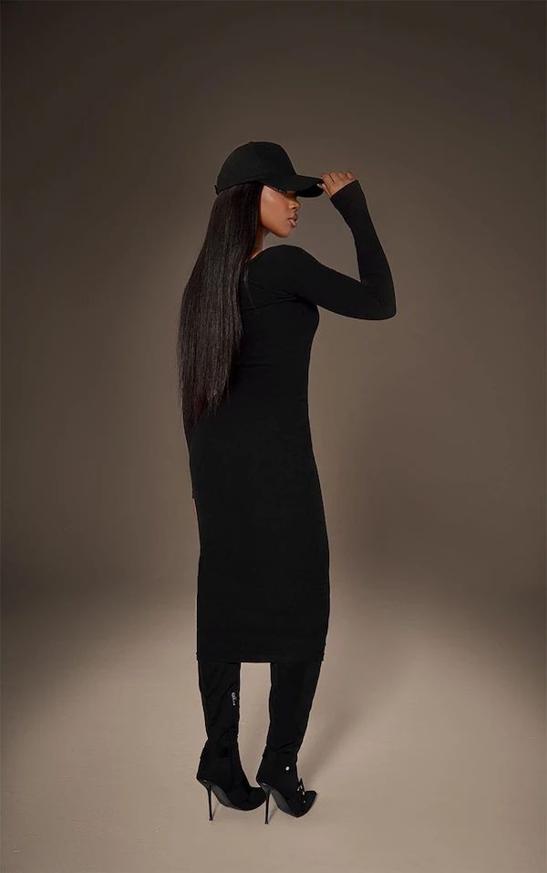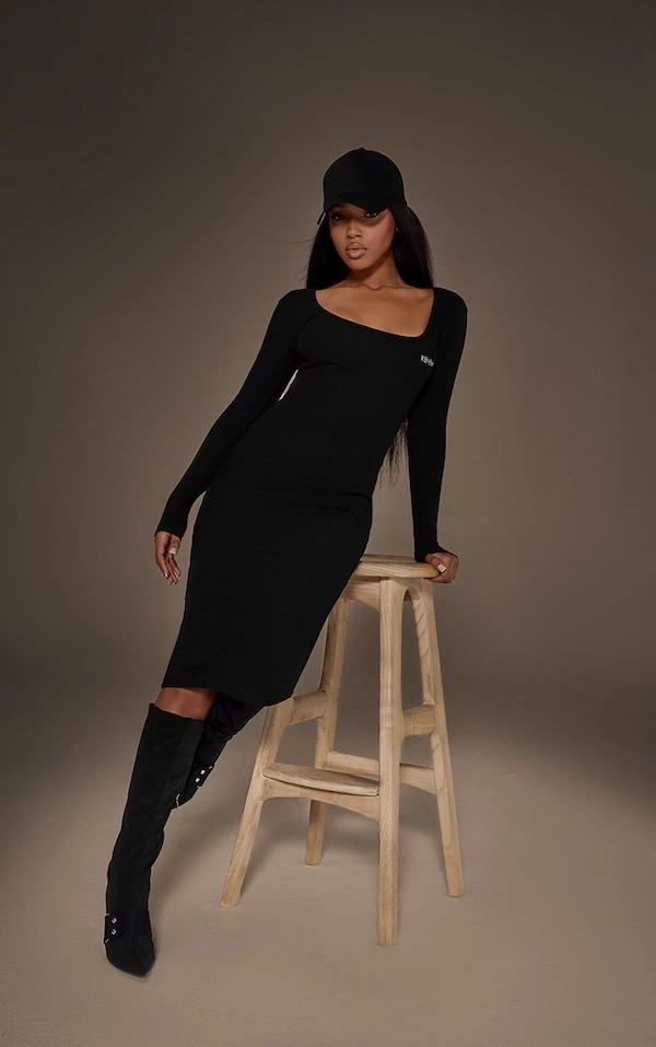 Un classique à ne surtout pas louper les girlies ! On aime beaucoup sa matière très côtelée, son coloris noir qui va avec tout et son design à col carré très structurant. C’est à porter avec une paire de talons très hauts et un petit sac. Stylée !
